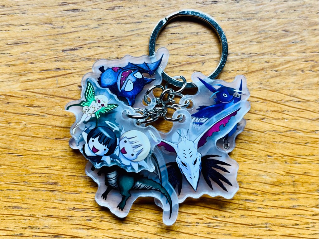 Not sure about this key chain set featuring the familiar spirits of the games’ characters. It’s not so much a “set“ as one key chain with loads of little spooky animal charms hanging awkwardly off it. At least they’re not dressed in slutty goth gear too, I suppose! They’re decent enough quality too, well printed on clear acrylic, but not massively practical! It’s alright but can also stay where it is in the box for now.