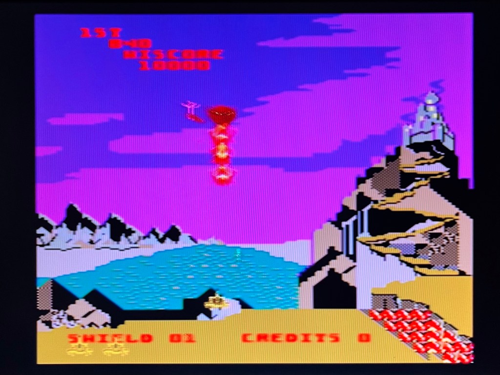 Satan’s Hollow. I know an interesting fact about this 1982 single-screen shooter – the arcade cabinet had the same flight-style joystick with a trigger on the end as Tron! Okay, not that interesting, but there is more to it than just being the Galaga rip-off it might initially seem like… “Defeat the menacing gargoyles who swarm down in formation and attack. Battle the egg droppers who release flaming eggs of fire and bombers who seek to destroy unfinished bridge. Avoid the deadly flaming breath of Satan’s head, who grows larger each passing second.” What that nonsense doesn’t really explain is that shooting gargoyles will cause bridge pieces to drop, and once you’ve finished it, you can cross into the valley to battle Satan himself. The attract mode actually alludes to multiple Satans though, from Lucifer to Beelzebub to, er, Big Satan or something! Doesn’t matter. None of it matters! It’s a fun shooter with a twist that looks like a Commodore 64 game, which might be why that’s the only place that ever got a home conversion. Guess what though! The aspect ratio is correct! Hallelujah! Or hail Satan, maybe! I’ve got a huge soft spot for this game, and for once here there’s no place I’d rather be playing it.