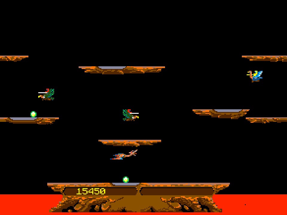 Joust 2. Being hauled into widescreen is about the best thing that could have happened to this strangely vertically-orientated 1986 sequel, but apart from that, it’s a far more complex, better looking and better sounding spin on the original, with themed level designs, a powered up ostrich and more monsters – including the fantastic Mutant Buzzards that hatch when an egg drops into the lava! Everything we just said about Joust applies here too; just a shame that by 1986 the arcades held much shinier distractions than just more of Joust.