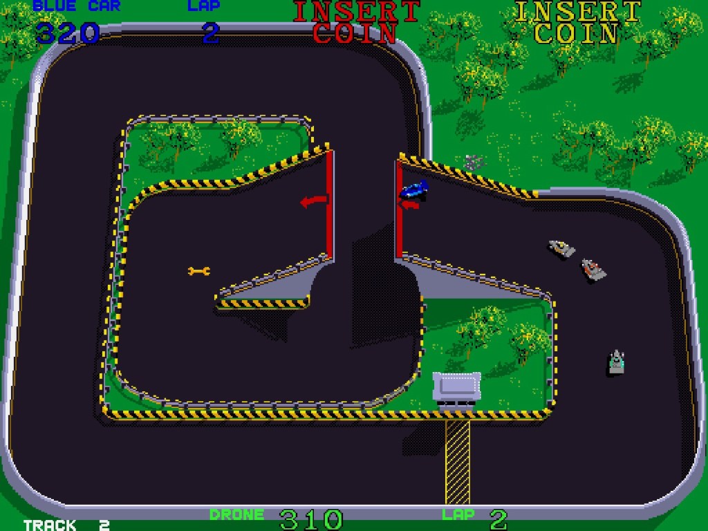 Super Sprint. Behind the curtain, I made a few notes on each of these games as I was playing. For SpyHunter, you pretty much just got a word-for-word transcript, but in the case of Super Sprint, my notes simply say “All as above. Stinks here!” For context, outside of SSX 3, assuming that counts, this is my favourite racing game of all time… Assuming that also counts! If not then Out Run, and if not that for any reason – like it’s not a race – then Virtua Racing, and no quibbles there! Whatever, this is sacred ground, and overall it currently sits at number thirteen in my big list of favourite games ever. Outside of Kick Off on Atari ST, I don’t think I’ve ever played a multiplayer game more than this one either – some of it arcade, a lot on ZX Spectrum, but mostly three player on ST too – youngest plays on keyboard! It’s top-down, single screen racing across eight perfectly designed tracks from 1986. There’s oil slicks and tornadoes, shortcuts and gates and Dukes of Hazzard-style jumps, as well as spanners to fight over so you can upgrade your traction, acceleration or top speed. It’s supposed to be perfect… Which the ST pretty much managed and the Spectrum wasn’t far off doing either, but not the PS2! Analog sticks have no place here, especially for the gas pedal. Again!
