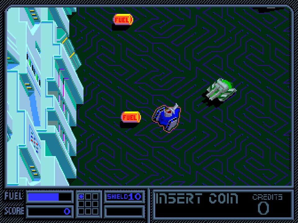 Vindicators. Let’s leave something I don’t especially care for on a downer instead! You’re in a sci-fi tank making your way through fourteen evil space stations, shooting stuff and collecting fuel and power-ups until you get to the control room, which you loot and destroy before moving to the next. I was always annoyed when I had to get in a tank in Ikari Warriors, and I definitely don’t want to make a career of it in this 1988 twin-stick drive and gun game, but I will say it’s another real looker, something like Speedball meets Zaxxon! Positives over, check out these tank controls, which make Toobin’ feel like Robotron in comparison! Left analog stick is left tread and right is right. There’s movement on the d-pad. Moving upward to the shoulder buttons, you’ve got left tread forward and left tread reverse, and the opposite over on the right ones. Then onto symbol buttons, triangle is turn turret right and square is turn turret left, while circle is special weapon and cross is fire. And for me at least, all of that combined make not only the most basic of movements almost impossible, but when I had somehow made the smallest of progress, to try and repeat them was totally impossible. And just to clarify, I’m talking about moving backwards and forwards, left and right. Nothing fancy, although don’t forget we are also in the middle of a battle to save the galaxy while we’re learning to walk here! I’m fine with tank controls, especially when they’re on an actual tank, but how hard can this be?