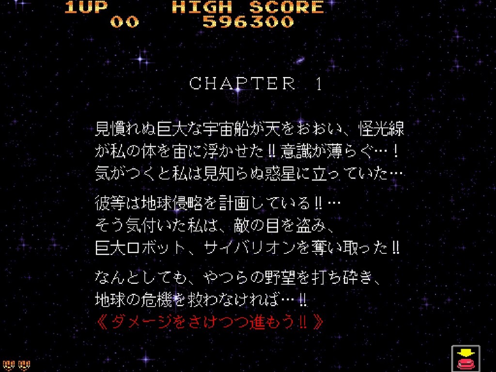 I’m done mocking bad Japanese-English because I’m way too impressed with the tech that’s just generated it for me, but I do want to give a flavour of one of these random story scenarios we’ve talked about as we jump into that mode… “I was finishing my long space journey. However, on the way, the mechanics of the autopilot system failed for an unknown reason. I’m a stranger. It was washed ashore on a planet! Restoring its functions, as I explored the strange planet, I came across a surprising fact. This planet! They are planning to invade Earth! In order to destroy it, I challenged the battle alone.” You get the gist, and actually, what I’m realising now I’m doing this for the first time is that there’s a whole dimension to the game that we non-Japanese speakers are totally missing out on here! Might have to get that translation tool out again later. By the way, I’m going to grab a few photos from MAME here because trying to get photos of the Egret II Mini in action is a nightmare, especially with this thing’s exotic lightshow going non-stop, but rest assured that everything we’re describing is coming from the little arcade cabinet. In case you care!