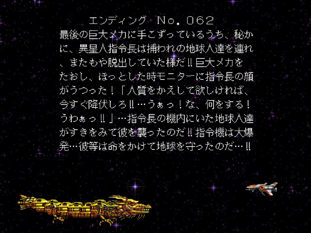 SYvalion is a very curious, very unique game that takes some getting used to but rewards you for doing so. That said, I also don’t want to forget that right at the beginning, as well as in that expansion set review, I said that this thing immediately grabbed me and has kept grabbing me and bringing me back for more for some time now. I’m sure it’s no accident that behind all the trackballs and randomness there’s still all the classic arcade game ingredients to get your attention then keep you feeding in the coins! And I am still curious to see what some of the other endings are like beyond numbers 62 and 64… “We took our hands and were sincerely pleased that the peace of the earth was maintained!! …But when we returned to Earth … we were just stand still ….! Is in a state of destruction!! All the earthlings died out. It was a little late!! It’s!!” As impressed as I’ve been with these fancy new real-time translation tools, maybe that PS2 version isn’t a bad shout after all!