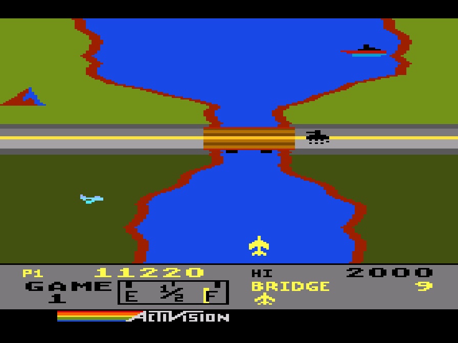 Time for a dear old favourite called River Raid, although while I did have a decent session on my actual favourite version on Atari 2600, I decided to spread my wings and give the Atari 5200 version a proper go too. It’s the same pioneering vertically scrolling shoot ‘em up in the the lowest altitude plane ever but the graphics are a bit better defined and more colourful. Playing for score is the way on both versions too, with precious fuel worth way more than enemies if you shoot it, but can you really chance it? This one is addictive as hell and totally timeless even if you can only fly at ground level… Stupid bridges!