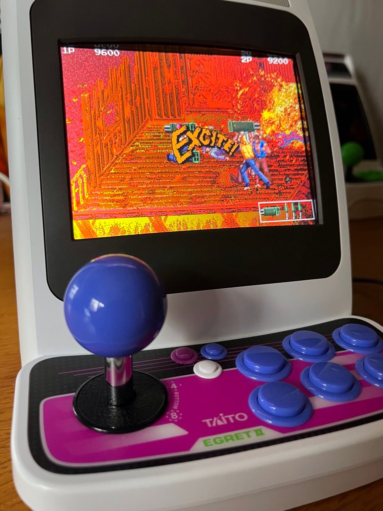 Dabble I then did with Growl though, and it immediately started to dabble with me – I’ve always loved a beat ‘em up, whether we’re counting Kung-Fu Master as the first (like Straight Up does) or something more traditionally associated with starting the side-scrolling genre like Renegade, but the chaos and general insanity here really gave it an edge (as opposed to its unique central theme which we’ll get to shortly)! Unfortunately, my curiosity to know more about what I was now thoroughly enjoying then led me back to my new book and to disappointment… “Taito also included a censored version of Growl on its outstanding Taito Legends 2 compilation pack on PlayStation 2 and Xbox, with all the exploding bodies removed.” Unbelievable! Those body parts that fly everywhere after a hand grenade lands are the best bit! That said, trying typing in “SEX” as your initials on any version! Okay, speaking of other versions, there’s always MAME, but there was one more trick up my legitimate sleeve on the way even though it took me a while to realise… I’d had the Taito Egret II Mini on pre-order since it had first been available to pre-order several months earlier, and as the time for it to arrive got closer, I was looking into previews and games list updates and the like, and noticed this newly familiar-looking game called Runark…