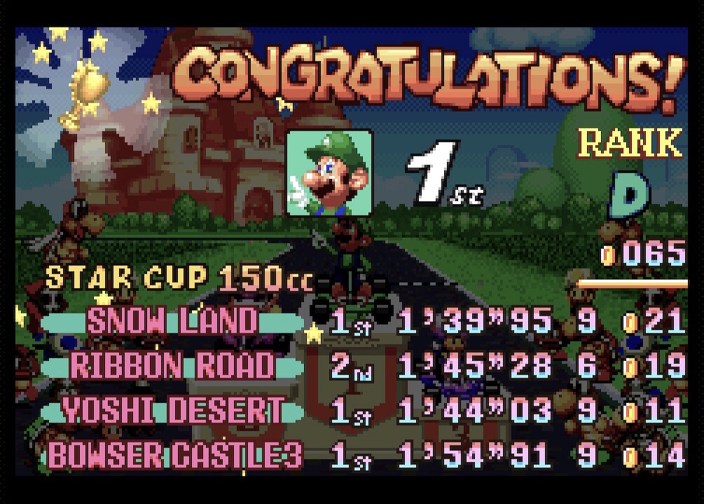 I finally had my fill of the dreadful Atari Jaguar kart racer, Atari Karts, on the Atari 50 compilation on Switch, somehow sticking it out to beat all the cups in Beginner, Warrior and Miracle classes, so that meant I could finally get back to doing the same on Mario Kart Super Circuit! This is the Game Boy Advance version, recently added to the expanded Switch Online service, where I’d completed all the cups in both the 50C.C. and 100C.C. classes before I got bizarrely sidetracked by that absolute Atari shocker! Anyway, I’ve now polished-off the 150C.C. cups too, and more than 20 years since I did the same on the proper GBA, I can only reconfirm that this thing is both a masterpiece and a miracle that it ever even existed on there! It still plays like a dream, especially handheld as originally intended, with imaginative but tightly designed tracks throughout that are so vibrant and move so effortlessly. It’s the race balancing that does it for me the most though – always rewarding both skill and time spent but with just enough luck that you’ll often look back and wonder how you just pulled that off. Or, of course, the opposite too!