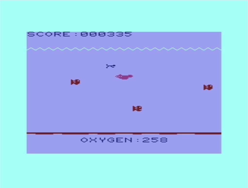 Having had to sell off (nearly!) all my VIC-20 games to help fund my Spectrum a very long time ago, it’s wonderful now when I come across games I used to own but had forgotten all about! In this case it’s a couple of budget titles from Mastertonic…. The first is Sub Hunt from 1984, and it’s a take on Seaquest, my all-time favourite Atari 2600 game! It’s a single-screen shooter, with your little sub trying to rescue your scuba diving friends while shooting the “evil fish” and submarines coming at you from all directions. Rescue six divers and get them to the surface before your oxygen runs out and you move to the next level. It’s definitely discount Seaquest – equally simple to look at but it doesn’t quite have the fluidity of control. Not bad for £1.99 though.