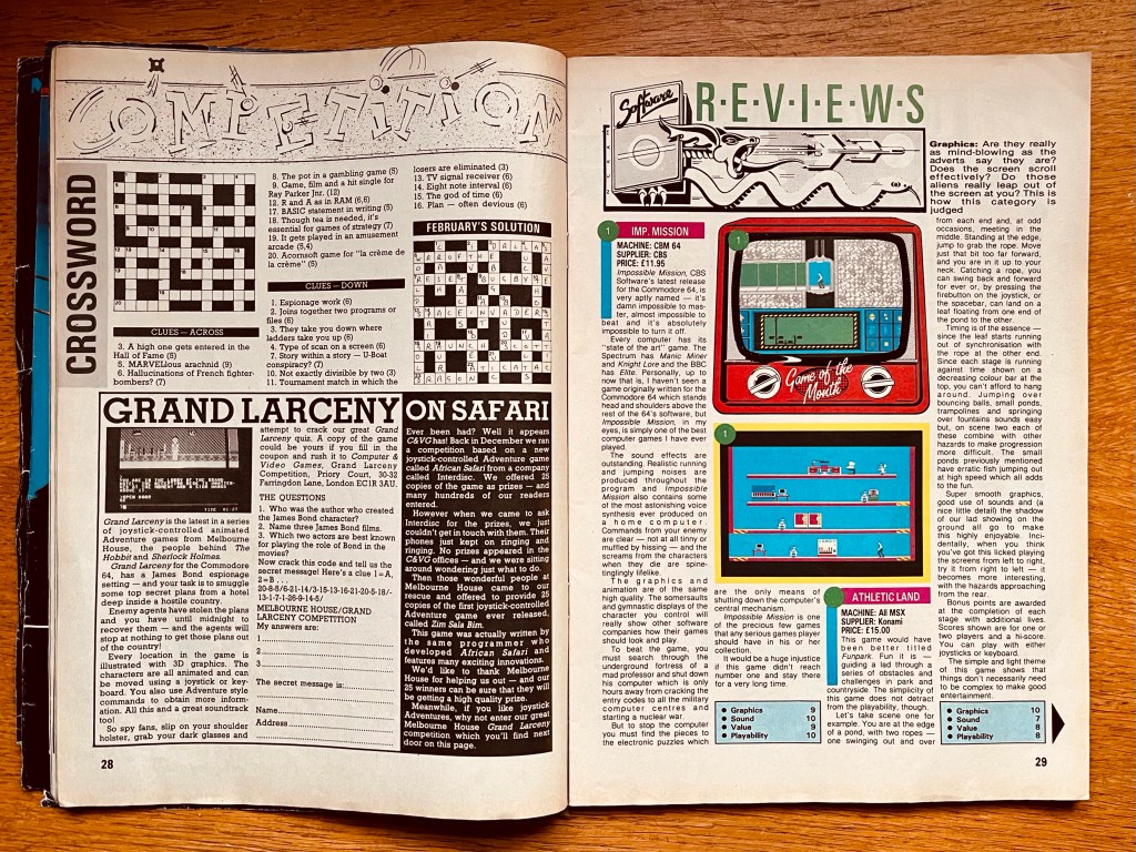 You know a game is something special when you can just mess around with it for hours and hours, and then on and off for decades, having as much fun as I have without really having a clue what’s going on! And now I do, Impossible Mission is even more special! I think the passage of time has probably helped me appreciate it even more than that though. When it came out, all that speech and the animation and even the complexity, assuming you made the effort, were ground-breaking, and visibly so to anyone who came into contact with it, regardless of their level of engagement, but none of us could have any idea quite how forward-thinking it was, and quite how influential it would become. Graphics 9. Sound 10. Value 9. Playability 10. That C&VG review from earlier wasn’t far wrong!