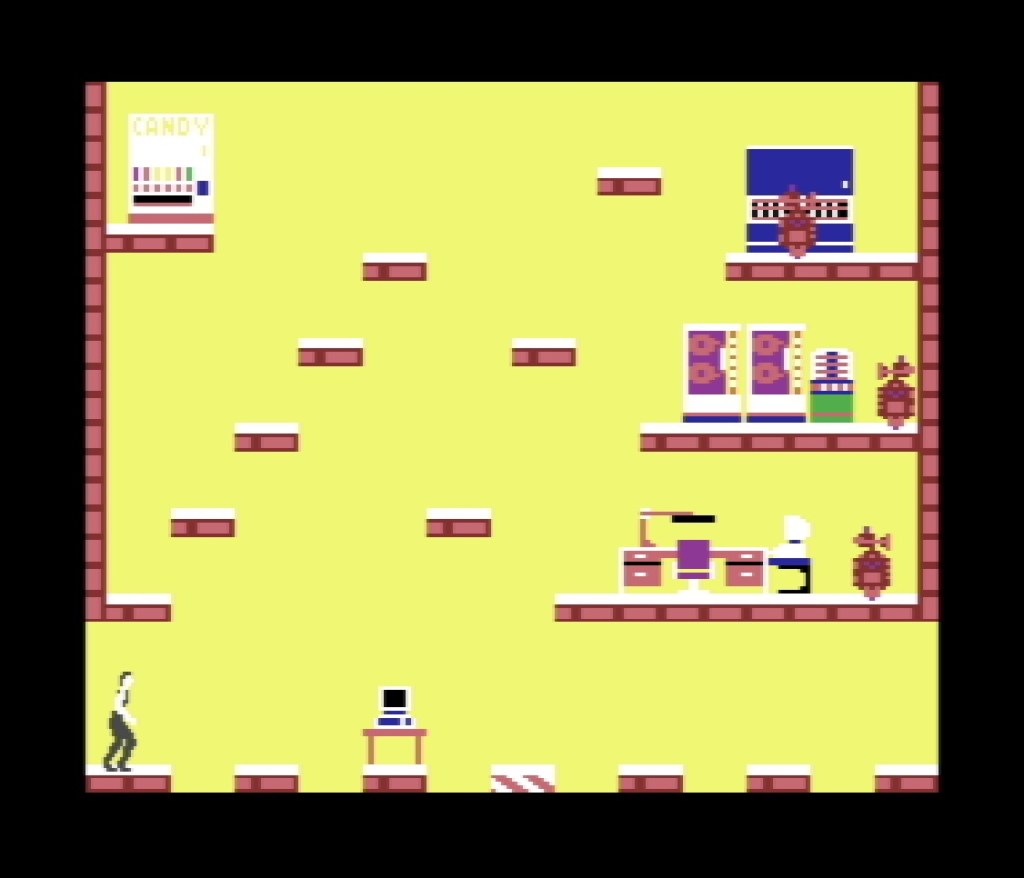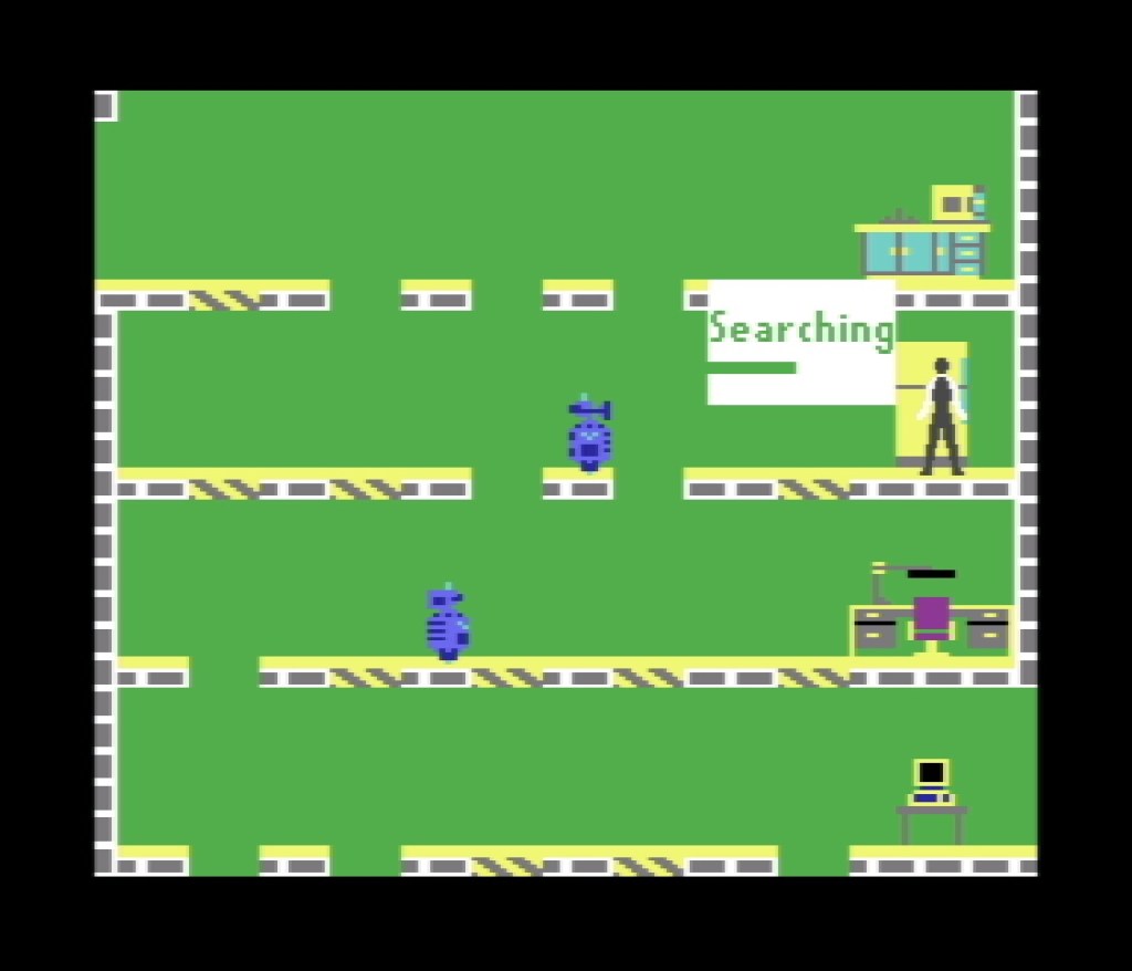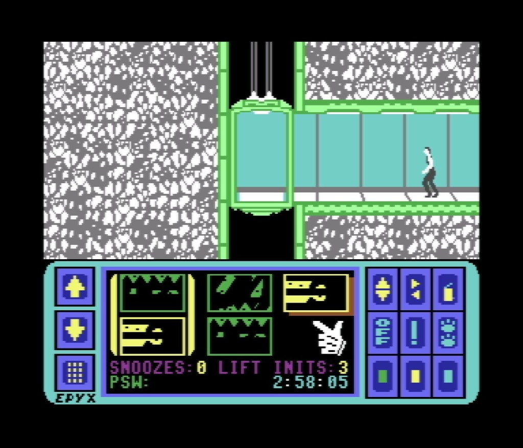 You might be able to get one there though, because on your travels you’re going to come across three kinds of codes as you scour the platforms; one will deactivate the robots and their particularly nasty high-voltage electrodes, one overrides the lifts and the other will be a puzzle piece to help unlock the control room at the end, although you’ll need to find loads of these then match them all up to form a code before you can do that! We’ll come back to that later, but in the meantime, the absent-minded Elvin, who seemingly can’t remember any of these, has left them scattered around his lair, secreted in his stereos, sofas, toilets and other furniture, and as a result you’ll need to search absolutely everything you walk in front of by holding up on the D-pad until it’s complete, and how long that takes depends on the size of the furniture. Most of the time there’s nothing there, but you never know, and playing cat and mouse around the platforms with the various robots while you try and complete a search is one of the game’s real joys! In summary, then, what I know now is that rather than just aimlessly (but very stylishly!) jumping about and enjoying the big lifts, the idea is to explore the rooms and tunnels of Elvin’s underground stronghold, avoid his robots and find the puzzle pieces that will allow you to enter his control room and put a stop to his plans. That’s not all though, because finding puzzle pieces will score you points, as will putting them together and getting to the control room as fast as possible, and the faster you do that, the more points you then get. What’s really cool, though, is that the rooms and robots are rearranged in every game, as are the puzzles, and that’s not something you’ll notice until you play properly. Mind blown!