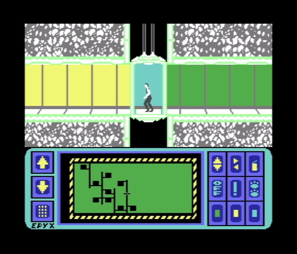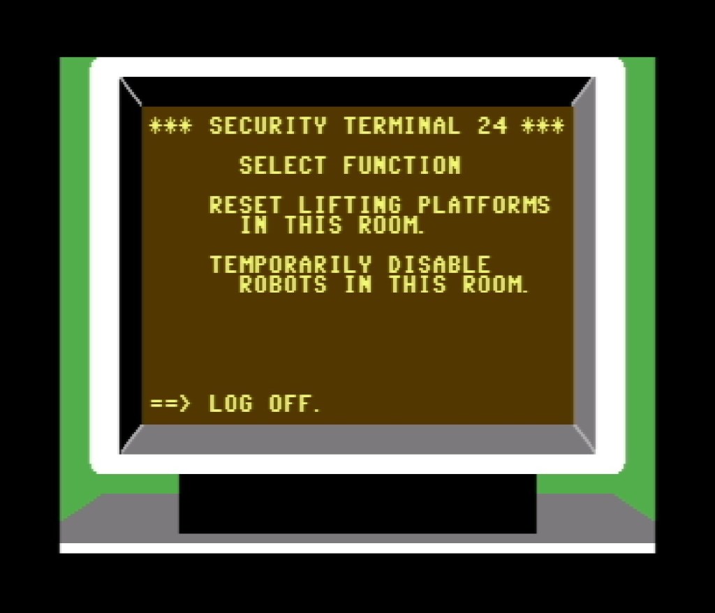 Something else you quickly realise is that behind the game’s cool, James Bond (rather than stuffy Mission: Impossible pre-Cruise TV series) demeanour, the real draw is actually its complexity, and remember, we’re talking mid-eighties! This is a good point to come back to that pocket computer, but let me give you a really quick example of just how forward-thinking this thing is too… “Some rooms are harder than others. If a room seems too hard (presumably because you don’t have any passwords to reset the lifts and turn off the robots), come back to it after you’ve acquired some passwords.” Having spent so long with Elden Ring back in 2022, I just can’t help the comparison! There’s also surprising intelligence in those robots, with some running different programs to others, for example machine vision or noise detection on top of those electric shocks. Even the platforming – yes, from that period that would put the supposed brutality of Elden Ring to shame – features some quality of life conveniences that are way ahead of their time, like not really having to somersault over the smaller gaps in the floor, but stepping across them instead, although if you stop pointing in the right direction too soon you’ll still fall! And if you’re going across a bigger gap, you can time your jump so one foot is already over the abyss and you get just enough extra distance to make it over.