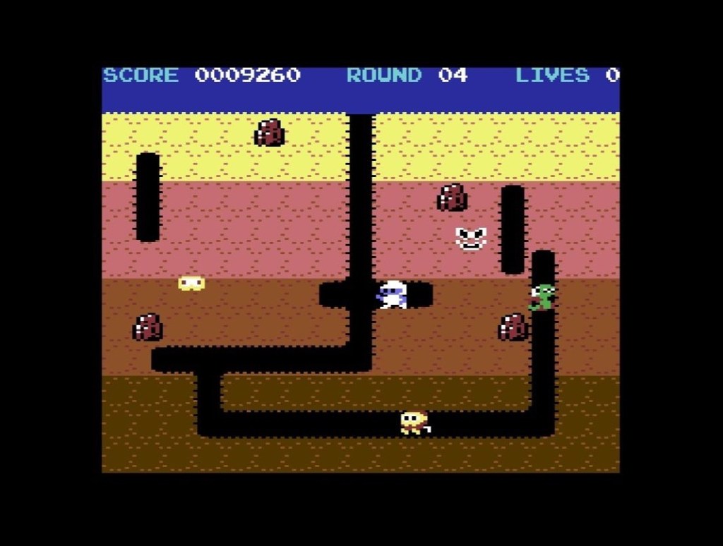 Dig Dug Revival is a very cool new homebrew for the Commodore 64 from LC-Games. It’s a faithful conversion of the 1982 original arcade game from Namco but with the playfields randomly generated each time you’ve eliminated all the enemies on the current level. It plays just the same though (and actually it’s way more fluid to control than the old official C64 version), with you navigating your way underground to keep your distance from the little dragons and tomato-nasties until you’re ready to let loose with your bike pump and inflate them to death or lead them under a falling rock. Get a few under one falling rock and you can rack up some decent bonus points too! There are four difficulty levels but normal feels just about faithful to the original, as does the enemy AI, which causes them to move faster the longer you take, and a few levels in you’ll have different densities of dirt to dig through too. Definitely check it out on the LC-Games itch.io page!