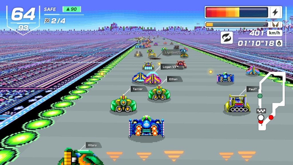 Next up is the wonderful chaos that is F-Zero 99, announced at last Thursday’s Nintendo Direct and released “free” on the Nintendo Switch Online service the same day. It’s a twist on the original SNES game, with familiar tracks, a similar but much larger scaled (to accommodate ninety-eight other players) visual style, updated music and new features like a spin attack and sparks to collect to boost you onto a temporary higher-speed elevated skyway. There’s a few modes, special events, level progression and other rewards for doing well but it’s mostly pick a race, vote for a track then enjoy the carnage of an impossible number of racers mainly just trying to survive to the end of the race – or at least through the next cutoff point at the end of each lap – as your energy constantly drops, either from using it to boost or just hitting things, which is inevitable! I’ll never win a race but I’m having a lot of fun just being in it for now!