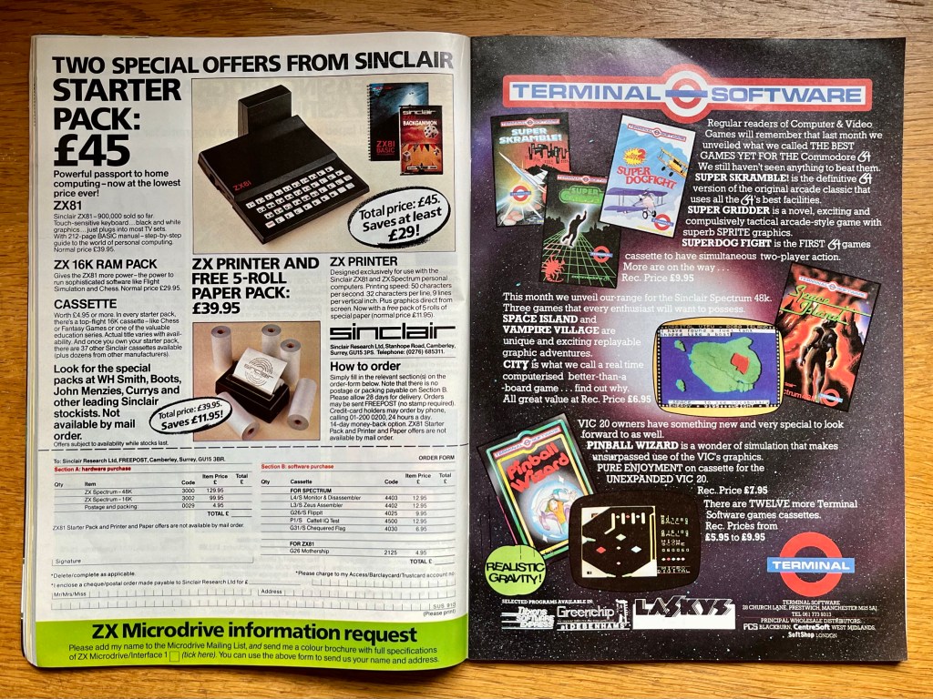 After a bit of an experiment with the pilot episode of this feature back in August 2023, it seems like I’m not the only one who likes having a look back at old copies of magazines from forty years ago, and while I’m still not quite ready to go monthly with this yet, I did manage to pick up a copy of the October 1983 issue, so we’re back again for a bit of a bonus instalment of what will become an increasingly regular feature as my collection allows! And just to recap how we arrived here, I started collecting C&VG in earnest back at the start of 1985, and continued with every issue until mid-1992, but for the last couple of years have been sporadically working my way backwards (so far), firstly to fill in a couple of early gaps, which then turned in to collecting the ones I’d read second-hand from friends in 1984, and inevitably then went back even further towards the first issue in November 1981, as and when such things occasionally appear for sale at a not too outrageous price!