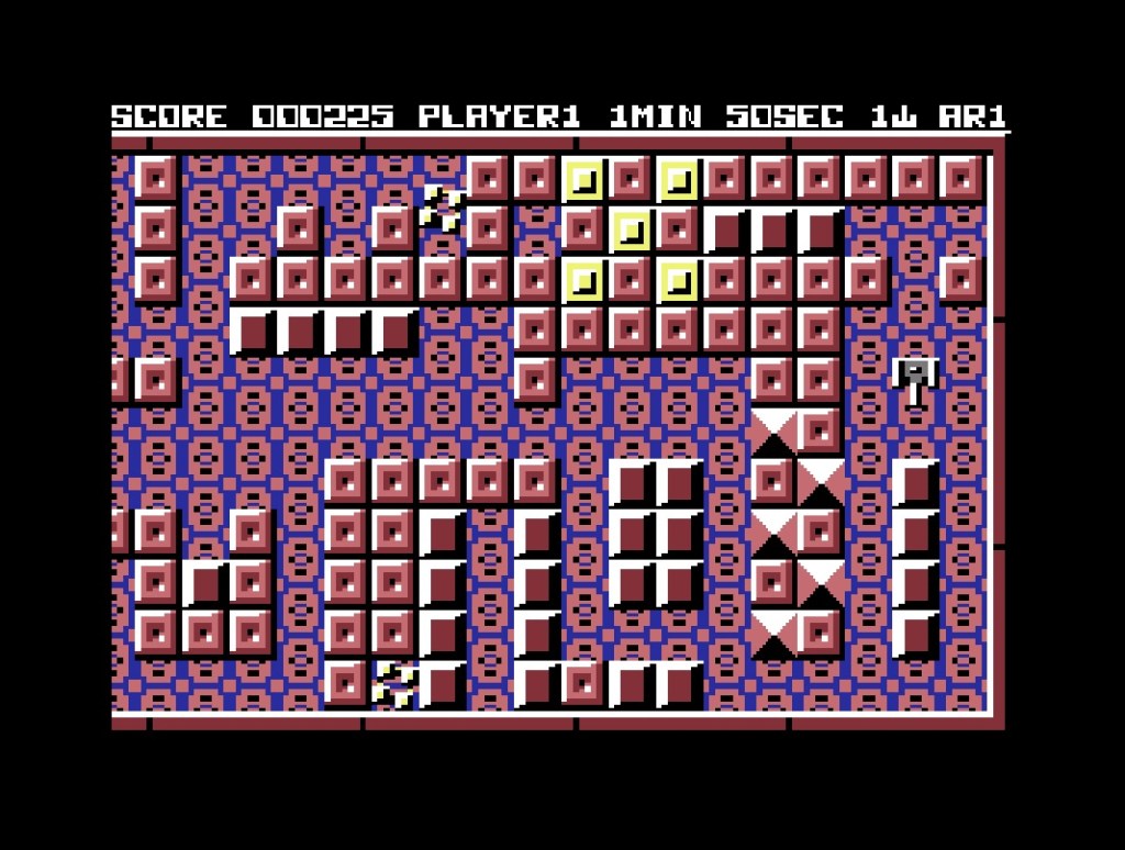 And what a way to follow that up, with Boulder Dash, which might not have begun life on the Commodore 64 all the way back in 1984, but has certainly become one of its most iconic and celebrated titles! You play as Rockford, who’s on the hunt for diamonds in a series of monster-infested, scrolling caves… You have to collect a certain number of diamonds in each one to open up a portal to the next level, of which there are sixteen, and as well as monsters, they’re also full of rocks, and when you walk under one it’s going to fall behind you, so watch out below if that’s where you’re heading because it won’t stop until it reaches something solid, meaning you can also use them to squash enemies too. The further you go, the more complex the level designs (and in particular the rock placements) are going to become, which makes Boulderdash as much a puzzle game as a Dig-Dug-infused maze-action game. And while the same might not be said for its primitive but perfectly adequate (not to mention perfectly C64!) looks and sounds, that gameplay is absolutely timeless, and is a standout reason to own this collection all by itself!