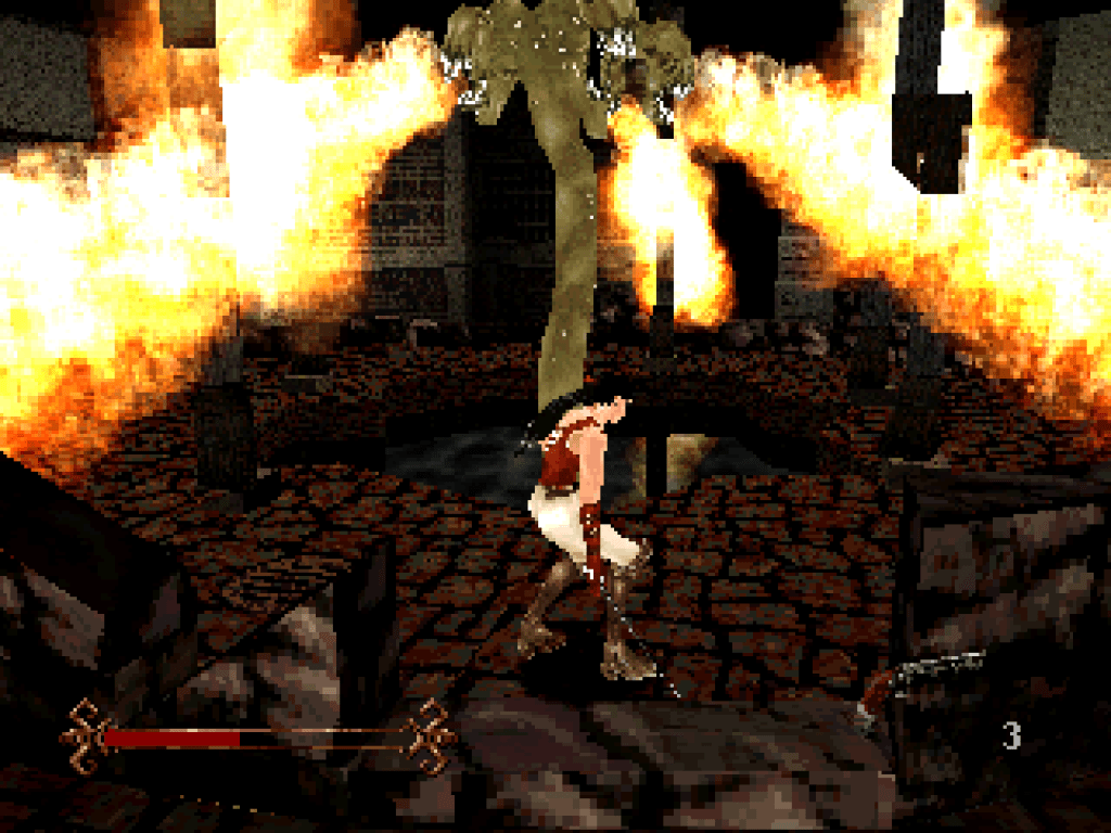 Tank controls and a few forgivable glitches aside, everything moves okay most of the time, although the camera does occasionally struggle to keep up if you happen to take a fight around a corner, for example. Which brings us back to the game’s difficulty because, while there’s no escaping there’s a lot of jaggedness to the graphics, that’s really the fundamental problem, where, taken standalone, you could probably say just get good, but throw in the imprecision and jankiness as well and it’s a tough ask. Okay, you can save your progress between levels, or choose to take a password instead, but coming into the game anywhere but the start is harsh. And even that’s harsh! And I reckon even if you did somehow keep going, you’d probably have had your fill long before you’d battled through sixteen levels. But you know what? I’m so glad I did finally go back because those first few levels are also a real treat! If the graphics and the controls are a perfect time capsule – for better or worse – for the original PlayStation, then so is the gameplay, but only for the better in this case! The feeling of being able to properly explore a “real-life” and “open-world” 3D gothic fantasy environment, with all sorts of moves up your sleeve for when all sorts of monsters are constantly jumping out of the scenery to get you is what the PS1 was all about, and without a hint of colour clash either!