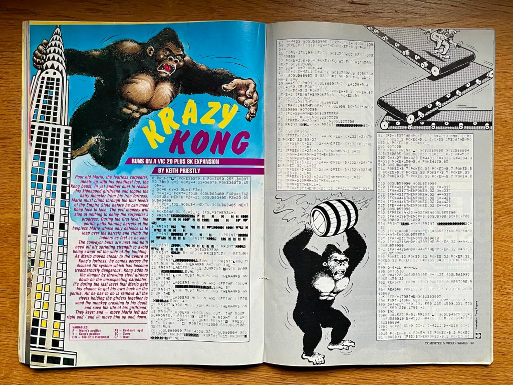 The first of this month’s type-in games listings comes next, with The Tower on the Spectrum sounding like a stripped-down Chaos: The Battle of Wizards, which was still at least a year away! Micropoly was a stripped-down version of the board game on there this month too, although the length of the listing was anything but! On the Atari 400 there’s Rising Damp, which seems to be a platformer where you’re escaping floodwater while avoiding a monster in the attic. Sounds like a job for that carpenter from earlier! As does Krazy Kong on the VIC-20, which blatantly features Mario as well as stealing the names of a commercial clone. Or klone! But what are they going to do about it? At least Dotty for the BBC is marginally more respectful of Pac-Man though, and comes with a welcome explanation of what’s going on in the code, before normal copycat service resumes with Super Invaders for the Oric. Time Machine seems to be a multi-stage space dodge ‘em up for the Commodore 64, then we finish on the TI99/4A with Prison Run, which sounds just like Alcatraz Harry on the ZX Spectrum – possibly the second game I ever finished!
