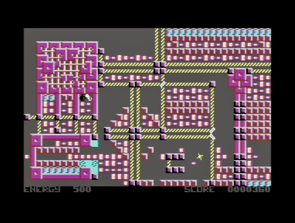 Messing around with Gauntlet on the Commodore 64 the other day, I was also reminded of Spore on there, which is in a vaguely similar top-down, mazey-combat vein but plays out on a single screen and has a bit more of a puzzle element to it as well. Pretty wonderful Commodore 16 version too, as well as the most garish thing you’ve ever seen on a ZX Spectrum, but having this remembered it existed, I couldn’t resist going back to that C64 budget title I remember from 1987 as well this week! It’s about a scientific experiment gone wrong, with hazardous spores running riot in the lab they were created in and now threatening everything outside it, meaning you need to go in armed with only a handgun to keep the spores at bay and collect the antidote canisters on each level. The graphics might be minimal but that doesn’t stop them being the most intimidating thing ever as you’re greeted by this insane number of spores spewing out of regeneration points between you and each canister, with various barriers and reflectors adding that puzzle element that sometimes help but more often than not are like a bomb you need to defuse because do the wrong thing first and you’ll open the floodgates rather than the little gap in the fence you were trying to squeeze through! It’s such chaotic fun as you somehow make progress against seemingly impossible odds, and was outrageously good value at £1.99, for which you were also getting a fantastic David Whittaker title tune and a level editor!