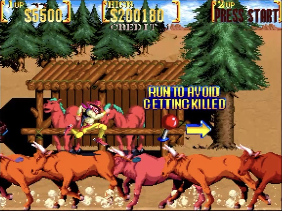 Now, I’ve never been any good at Sunset Riders but it’s never stopped me having a good time with it! And how can you not? The relentless action, the slapstick humour, the spectacle, the pure, undiluted fun…Best-looking Wild West game this side of Kane on the Commodore 64 too! Konami’s run and ride and gun arcade classic from 1991 also has a mean set of SNES and Sega Mega Drive (or Genesis) ports too but this week I’ve been rocking the Nintendo Switch Arcade archives release, which includes both the Japanese and North American versions of both the two-player and four-player variants, all of which are unfortunately wasted on lonely old me but fortunately it’s a total blast solo as well! You play as one of four unique bounty hunters, each with their own eight-way weapon types to suit your preferred play style, from revolvers to rifles to regular or double-barrelled shotguns, and in each stage you’re after the reward for one of Old America’s most wanted, hiding out at the end once you’ve dispatched all their goons, ridden along the side of steam trains, powered yourself up in places of ill-repute and run the gauntlet across a stampede! And a lot more besides, although as said, I’m so bad at this that’s about all I’ve got for you from the first few of what I think are eight villains in total to catch! Despite my shortcomings though, it feels great to play, and the amount of stuff going on, and the variety of it, and the outrageous levels of animation and colour and sheer polish all make this absolutely top tier Konami. And not forgetting the gorgeous title screen, and the pure nineties cartoon cutscenes, and the authentic (or stereotypical, as you wish) music and the cacophony of wild Wild Western sounds… And that’s before you chuck in three other players! And not totally sucking at it!