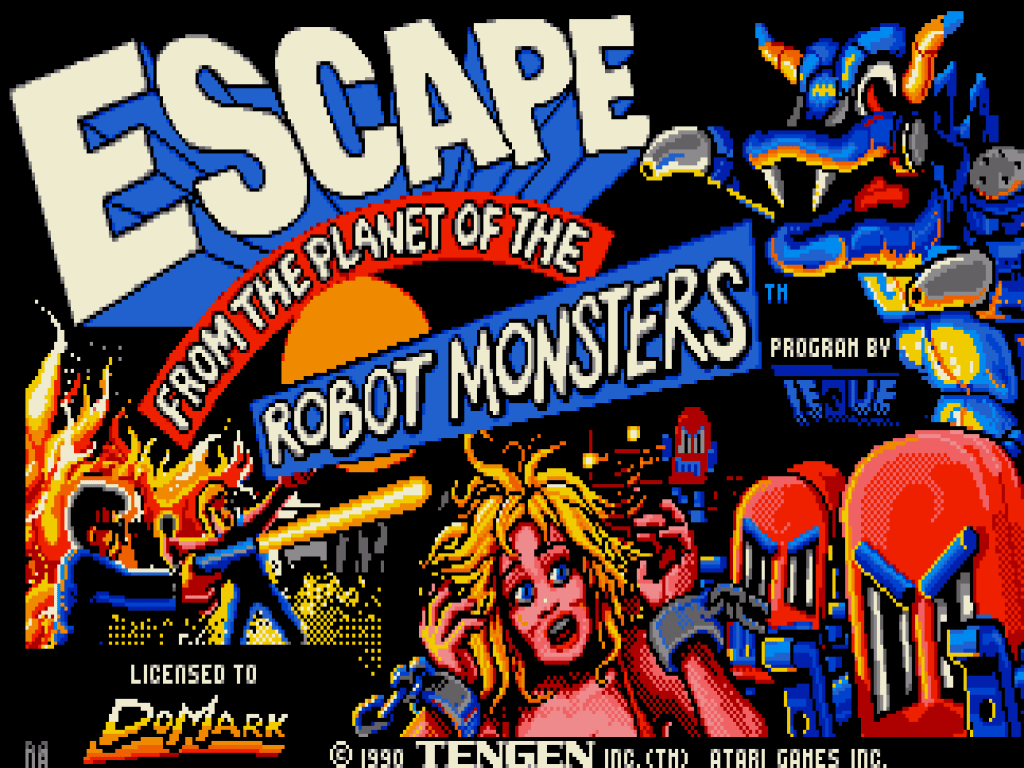 I didn’t know much at all about this game until it arrived on a wonderful Atari arcade game-based compilation called Tengen Trilogy in 1990, which also included similarly excellent ports of futuristic American footballer Cyberball, and legendary tile-matching arcade puzzler Klax, that I think had only recently released standalone and was most likely why I bought the set. Robot Monsters hadn’t been around long either, only hitting the arcades a year earlier in 1989, where it brought an authentically camp (but not authentically very colourful) fifties sci-fi b-movie aesthetic to a one or two player isometric shooter. You’re on a rescue mission after a bunch of robots overran the industrial Planet X so they could use it to build a robot army, kidnapping a nice lady doctor in the process. It’s a simple but challenging affair, with you shooting all the robots, flicking switches to open up new areas, and moving up and down and on to the next. Eventually you’ll then get to an auto-scrolling, isometric obstacle-maze thing, which will lead to the next level, and so on to the final boss. It all translates great to the ST, although the music isn’t a patch on the Amiga’s! Not sure how well it did anywhere else but it’s a fantastic game regardless, and a fantastic discovery to make on a compilation, which is what is always such a thrill for me!
