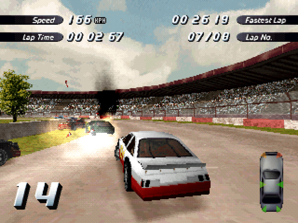 Last but never least this week is Destruction Derby 2 from 1996 for the original PlayStation! Like its predecessor, it’s a wild racer where you need to balance smashing your opponents to pieces with simply surviving, from a choice of various race types over three modes, including Wreckin’ Racing, where you get points for damage done as well as finishing; Stock Car, which is just about finishing as high as possible; and Destruction Derby, set in crash arenas rather than race tracks, and is all about destruction until everyone’s cars are destroyed! I’ve always favoured the Stock Car Championship (or career) mode, where skill will get you far enough through each snappy season of four races to maintain your place in your current division but you’ll need a whole lot of luck to start climbing them! The original got some way there but to this day, I can’t think of any other game that’s so successfully used sheer chaos as its central mechanic, and that’s means nothing but fun! With twenty cars racing on either short or carnage-infused (or both!) tracks, each with multiple damage zones on their extremities, anything can happen, from plain old massive pile-ups to either pick your way through or just get out of, to coming from out of nowhere to a decent position past a field of burning cars on the last lap, or limping your way home on max damage yourself, where one more scrape means your radiator blows! Apart from the pop-in and limited draw-distance, the graphics hold up well considering, with plenty of detail and variety between tracks, and the rocking music and relentless sound effects reflect the action brilliantly, especially the limited but exuberant commentary! Big improvement on the driving and collision mechanics here too. This is one of my top twenty favourite games of all-time, and as always, going back to it on the PlayStation Classic for a change this week has been such a joy!