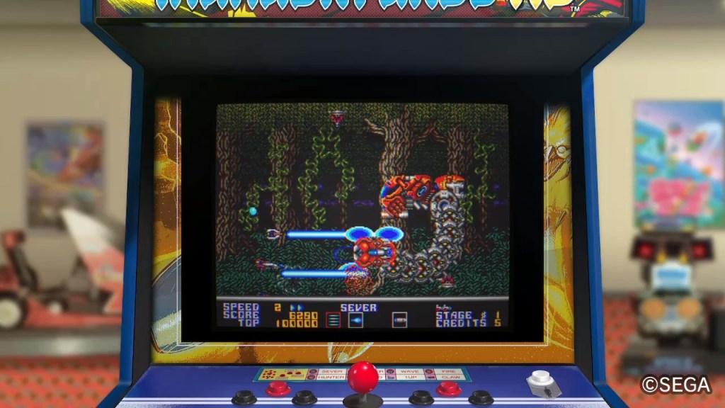 Next up now though is Thunder Force AC, the 1990 arcade reworking of the Sega Genesis or Mega Drive horizontally scrolling shoot ‘em up Thunder Force III, and it’s also an absolute favourite of mine! I’ve been back on the Sega Ages version on Nintendo Switch this time, which includes unlockable ships from other games in the series, as well as some fancy (but not necessarily practical!) display options, online leaderboards, a Kids Mode and save states, both of which are more suited to someone as useless as me because blasting your way through the armada of the evil ORN Empire across five alien planets is no mean feat! Actually, those environments can be as dangerous as their inhabitants, so you need to make use of being able to alter your ship’s speed almost as much as the ability to instantly switch between loads weapons you’ve collected and powered-up as you go, so one second you can be firing front and back and the next you’ve got this huge pulse wave firing up and down and forwards. You’ll want to hang on to them as long as possible too because things gets frantic fast, but it’s always learnable frantic, and a lot of what’s going on is often from your screen-filling weapons, or some really cool big bosses, so no panic! The soundtrack is great if not not quite Thunder Force IV great, although there’s so much other sound going on over the top you won’t be comparing the two as you play! So much going on is what I love about this one though – as well as the sound, there’s graphics everywhere! It’s like the best-looking Mega Drive game ever, built on those foundations but full of multi-layered tricks and flourishes that machine could only dream of, and so much diversity too, from organic forest worlds to psychedelic lava caves to gorgeous star-fields and beyond! And I love it all!