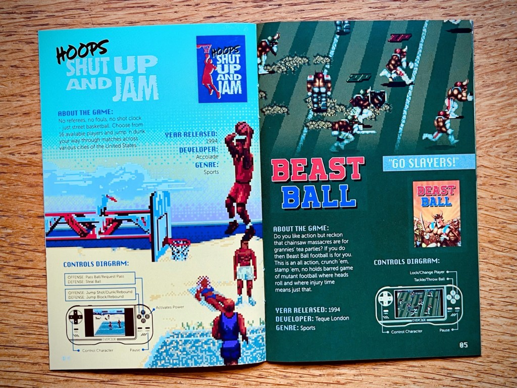 And with that, I forgot about it all over again, until along came the Piko Collection 2 for Evercade – which I think I got for my birthday in 2023 – including Beast Ball for the Sega Genesis or Mega Drive, a near-complete but unreleased port of Brutal Sports Football from 1994. The prototype version on this cartridge apparently turned up in 2011 but I’ve no idea why it (and the planned SNES conversion) disappeared originally though, considering it was as close to release as being advertised in the gaming mags, and even having review copies sent to a few of them. I’ve had a really good time playing it too – it’s definitely lacking some polish, with some graphical glitches and a general jerkiness, but at least I can see what’s going on. That’s the version I originally pencilled in to look at here too, until another recent compilation, Atari 50, which I’ve got on Nintendo Switch, inspired me to do a bit more digging into the Atari Jaguar’s library after I eventually properly got into a couple of its games on there at the tail end of 2023… Probably no surprise that one of them was Tempest 2000 but Atari Karts has become a real guilty pleasure of mine – totally janky Mario Kart rip-off but it has its moments and I rinsed everything it had to offer! The likes of Club Drive, Fight For Life and Trevor McFur that further represented the platform on Atari 50 can do one though, which left me wondering what was missing that I should be looking at, which I think took me as far as what might be my favourite version of NBA Jam (and if future me remembers, I’ll come back and link from here to the deep-dive I’ve got planned on that too!), and, of course, the very pleasant surprise that in 1994 it also got a port of Brutal Sports Football, so here we are to try one more time!