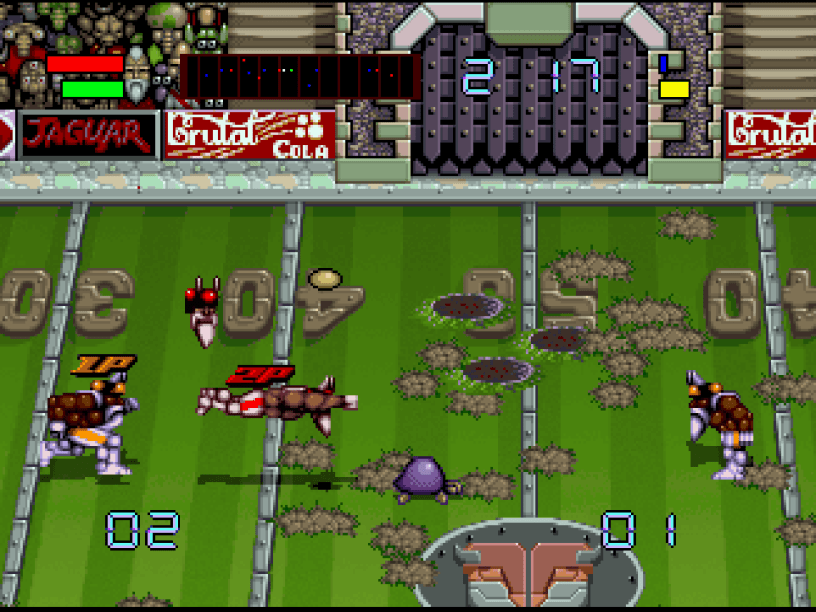 And with that, I forgot about it all over again, until along came the Piko Collection 2 for Evercade – which I think I got for my birthday in 2023 – including Beast Ball for the Sega Genesis or Mega Drive, a near-complete but unreleased port of Brutal Sports Football from 1994. The prototype version on this cartridge apparently turned up in 2011 but I’ve no idea why it (and the planned SNES conversion) disappeared originally though, considering it was as close to release as being advertised in the gaming mags, and even having review copies sent to a few of them. I’ve had a really good time playing it too – it’s definitely lacking some polish, with some graphical glitches and a general jerkiness, but at least I can see what’s going on. That’s the version I originally pencilled in to look at here too, until another recent compilation, Atari 50, which I’ve got on Nintendo Switch, inspired me to do a bit more digging into the Atari Jaguar’s library after I eventually properly got into a couple of its games on there at the tail end of 2023… Probably no surprise that one of them was Tempest 2000 but Atari Karts has become a real guilty pleasure of mine – totally janky Mario Kart rip-off but it has its moments and I rinsed everything it had to offer! The likes of Club Drive, Fight For Life and Trevor McFur that further represented the platform on Atari 50 can do one though, which left me wondering what was missing that I should be looking at, which I think took me as far as what might be my favourite version of NBA Jam (and if future me remembers, I’ll come back and link from here to the deep-dive I’ve got planned on that too!), and, of course, the very pleasant surprise that in 1994 it also got a port of Brutal Sports Football, so here we are to try one more time!