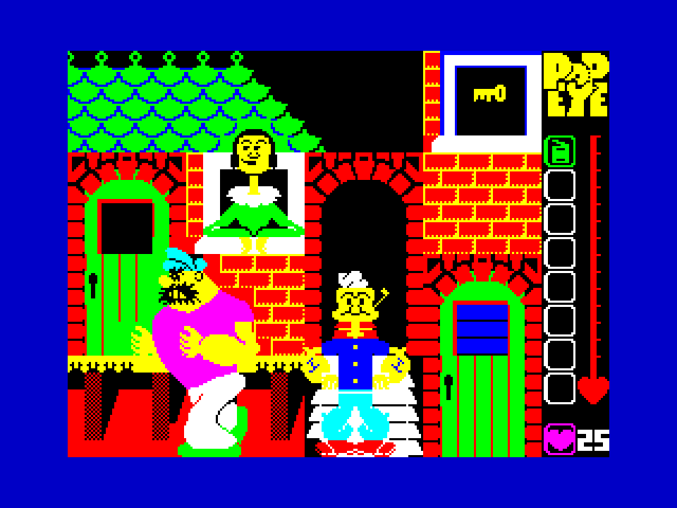If I’d have thought of this beforehand, when we eventually get into arcade and Atari 2600 Popeye’s in a second, you might not have been reading about them here at all, but the 1985 ZX Spectrum game by Don Priestley instead… I started with random memories, and there’s another one attached to this – I borrowed it from a friend one Friday afternoon, when every week we also went to my grandparents’ house shortly after we got home from school, so I had to wait to try it but took it with me all the same, and I remember staring in wonder at these impossible screenshots while I sat in the back of my dad’s car! Maybe not such a random memory in this case though – anyone who saw that thing for the first time in 1985 would never forget about it! Unfortunately, it looked way better than it played though, but those huge, full-colour sprites were all that really mattered! Popeye 2 wasn’t quite so impressive, especially coming as late as it did to the 8-bit platforms in 1991, and even more so the proper stinker that is Popeye 3: Wrestle Crazy from the following year! And over on the the handheld front, I do remember playing the Popeye Game & Watch when that came out it in the early eighties but I’m not so familiar with the later Game Boy, Game Gear and Famicom games that arrived through the first half of the nineties. I am very familiar with Popeye: Rush for Spinach from 2005 though, which is a cool narrative auto-runner (also involving my favourite Sea Hag!) for the Game Boy Advance!