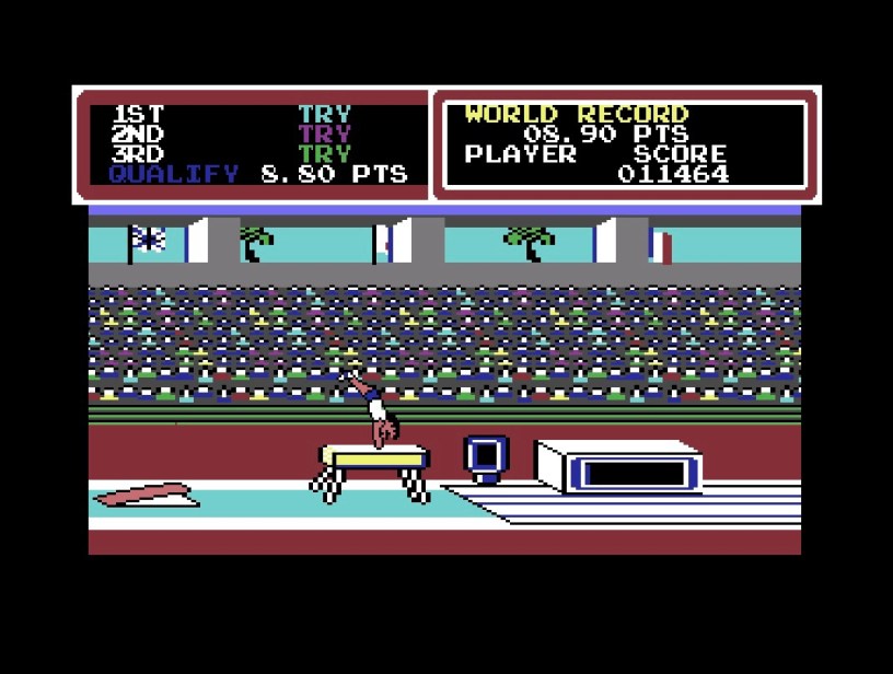 Quick topical one to finish with, and one of the Commodore 64’s great arcade conversions, Hyper Sports! Konami’’s sequel to Track & Field arrived in arcades in time to get an official 1984 Summer Olympics license in Japan (only) and featured seven events that mixed button-mashing and timing, meaning your poor fingers generally got a break between beatings! Plenty of variety too, with swimming, skeet-shooting, long horse gymnastics, archery, triple jump, weight lifting and pole vault, which, like other 8-bit versions, was missing on the C64, as was multiplayer, which I realise is a bit of a showstopper for many but didn’t stop for some fantastic world-record chasing fun at the time that’s still among my most memorable multiplayer experiences, and I’ve been playing solo ever since, so no big deal for me. The presentation of the original was very transferable to the C64, and while I love the Spectrum port too, it didn’t look or sound as real as this does – great detail, smooth scrolling, and loads of character and humour (mainly when things go wrong)! And every event is pretty much perfectly tuned, although heavy-wagglers like swimming and weight-lifting are a bit of a stretch on a modern controller! Risk something with a stick on it, or just stick with keyboard, and you’re still in for a great time though!