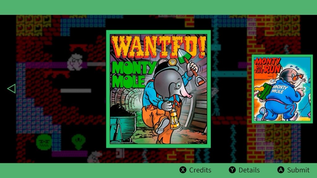 I’ve been waiting for a rainy day to pull the trigger on The Monty Mole Collection since it appeared on Nintendo Switch earlier this year, and while I am still waiting for such a day, I also know £3.99 of total bargain in a sale when I see it! This is a comprehensive coming together of the original 8-bit saga, including the main trilogy of Wanted! Monty Mole, Monty on the Run, and (one of my all-time favourites!) Auf Wiedersehen Monty, plus two bonus games, Moley Christmas, given away with Crash magazine, and Sam Stoat: Safebreaker, a spin-off featuring Monty’s cell-mate from the second game, which I’ve always known about but excitingly have never played before now! As well as both Spectrum and Commodore 64 versions of each game available to play (where applicable), you’ve also got multiple difficulty modes if some of the most brutal, unforgiving platformers ever created get a bit much, plus display filters, save states and up to ten seconds of rewind, which I’m glad I never had at the time but is my new best friend today! Hell of a collection, half price or not, so let’s have a quick look at the games…