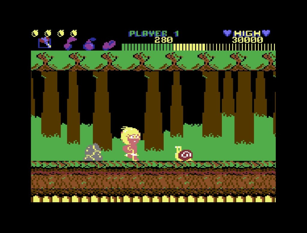 I adored Namco’s 1984 arcade machine as a kid, partly because I also adored Pac-Man: The Animated Series that it literally brought to life, and partly because it played great and like nothing I’d played before, doing the whole powered-up, side-scrolling running and jumping thing a full year before Mario! And while I was more than happy with the flip-screen and weirdly part-monochrome Spectrum version at the time, it was the Atari ST version a bit later on where I thought I’d really brought the original experience home. I didn’t get to Qucksilva’s 1988 Commodore 64 port until a bit later again, when I became a bit obsessive about getting through every Pac-Land port, and although I’d probably say the PC-Engine one is my favourite, this one is the king of the (proper ) 8-bits! You couldn’t want more from this, with a characteristically chunky but bold and smooth-scrolling interpretation of the original that’s also captured all the music and sound effects just right! The gameplay isn’t terribly frantic but sees you as side-on Pac-Man leaving his family and travelling across various obstacle- and ghost-ridden stages in each level to return a fairy to Fairyland, then get all the way back again for the next level. You’ve got the town, with the ghosts in cars and busses trying to knock you down, and there’s falling log bridges over ravines and forests and watery areas and a bit of stick waggling too, so plenty of variety but always simple, cartoon fun that really shines on the C64. Nice loading screen too – check out my Top Ten Favourite Commodore 64 Loading Screens feature for more on that!