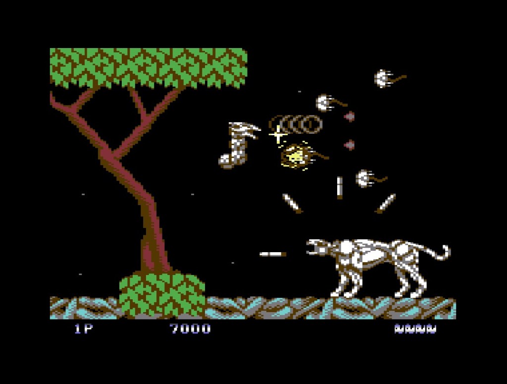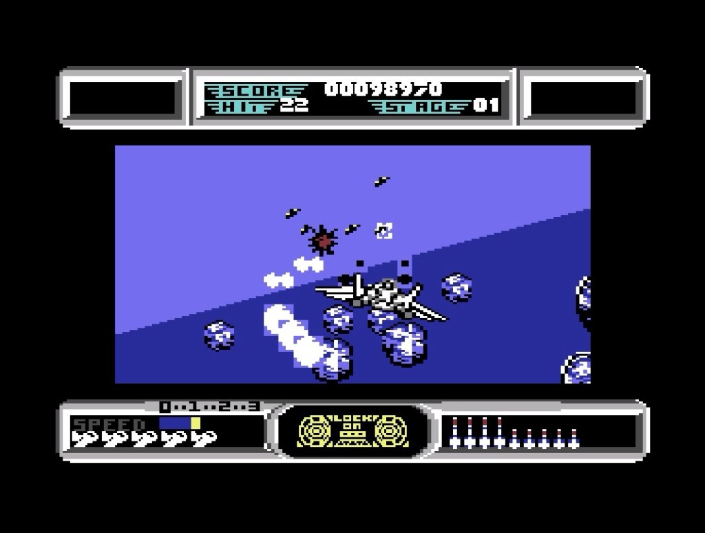 For whatever reason, I’d totally ignored this horizontally-scrolling shoot ‘em up until it appeared on the Jaleco Arcade 1 collection for Evercade back in 2022, but I’d now count it among my top ten in the genre… Which, I did, in a previous countdown here! Anyway, if humanity is being attacked by a seemingly invincible cyborg army, it needs to build a big cyborg dragon to fight back with, and in this one, originally from 1989, the gameplay is almost as straightforward as the plot – shoot stuff and collect tokens to upgrade your weapons through five levels and their big bosses. But there’s a twist because you can also control the position of your own tail through the movement of your ship, and with a bit of practice you’ll not only be using it as a shield, but to dish out a bit of damage too. The C64 port came from Storm in 1990, and while it’s been well scaled-back, it’s also quite a feat in its own right! It’s also unmistakably Saint Dragon, and you soon almost forget you’re even playing a port, with everything there, accurately replicated and in the right place with only very occasional slowdown, and both the gameplay and the level of challenge is pretty much spot-on. Even the big robot cats and giant bosses have made it in, a few terrifying animations aside, and the only other real concession is having to decide between the exquisite music and the visceral sound effects, which is a real shame because I think you need to tactility of the latter. All the same, you couldn’t ask for a lot more of this.