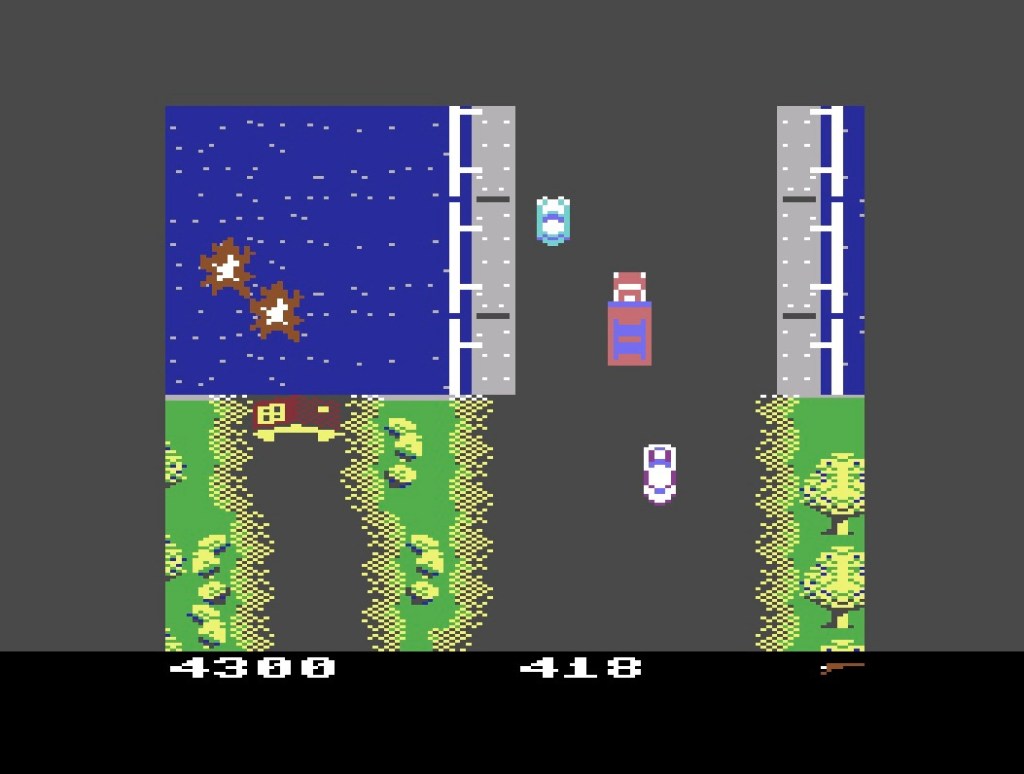 This wasn’t quite the first game I ever played on a Commodore 64 but it wasn’t far off, and it’s one of a select few from that period (including the likes of Impossible Mission and Winter Games) that have stuck with me ever since! That said, it dates from way before my time with the C64, right back to 1983 in North America, just after the Bally Midway’s arcade release, although it took a couple of years for U.S. Gold to get it out here in Europe. Who’d have believed U.S. Gold at number three?!?! Like Buggy Boy just now, this might also be another case of the conversion being more enjoyable than the original too – from how it looks to the all-important car physics, it does a great job of replicating this very James Bond-inspired, top-down, score-chasing combat racer, complete with machine guns, oil slicks, missiles and smoke screens, although nothing beats the side-on bashing of enemy cars! All those impressive little flourishes from the arcade game are here too, like the power-up truck that drops its ramps in front of you so you can manoeuvre inside, or the side roads leading to the river where your sports car will enter a boathouse on one side and you’ll come out in a boat on the other, so you can continue the chase on the water! The graphics are a little less detailed and vibrant but not far off at all, and same for the bursts of the Peter Gunn theme, and, coming back to that point about being more enjoyable, about all it’s missing from the arcade game is the gear-shift, which was little more than busywork in the first place, so you can concentrate on the proper action instead… And you can even connect a second joystick for the rear-mounted guns! The Spectrum version I owned was great for what it was but once again, the C64 totally leaves it for dead!