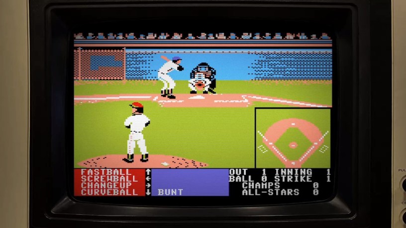 Although it took me almost forty years to actually get my hands on it, the original Commodore 64 version of Hardball from 1986 was the first baseball game that ever jumped out at me – one of those where a screenshot in something like Computer & Video Games magazine alone could sell you on a game, whether you were interested in the subject matter or not! Happened all over again a year later too, albeit in the cinema this time, when it appeared in The Princess Bride, but it would eventually take the arrival of The 400 Mini – exactly coinciding with my new-found love of baseball back in 2023 – for me to discover this 1987 Atari 8-bit release. Also plays great on the recent Atari 50: The First Console War DLC it came with on Nintendo Switch (pictured here) and elsewhere! It’s an early (but not the earliest) example of the TV-style presentation we’re familiar with today, with an over-the-shoulder view from the pitcher, neatly changing perspective depending on whether the batter is left- or right-handed, then switching the camera to a split fielding view as required. There’s intuitive but thorough pitching and batting control, while fielding and also coaching are enjoyably simple, and although there’s just two made-up teams to play with, and playing solo you’ll soon be winning games more often than not, it’s well-paced with a nice blend of arcade and simulation, and is a lot of fun all the same. And if the sound is ambitious but functional at best, the big, detailed, realistically animated graphics more than take the strain, and are way above and beyond expectations on any 8-bit system of the time. And if this was the only baseball game I’d owned since, I’d still be happy!