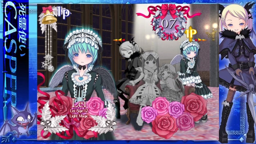 As was the case with its predecessor, we have four characters to choose from, each with their own unique weapons, familiar and magic, with two returning from the first game plus two new ones. The other two from before, Rosa and Follett, are present in the narrative but not playable, and while I doubt it’s by design, it does make things marginally less problematic for the poor player making their choice this time around. I think! I’ll just come out with it – Rosa is 17-years old and dresses like a Spanish prostitute with a bondage fetish, while Follett is apparently a 14-year old nurse in a uniform made for a fancy-dress party, shall we say. Now, I’ve been playing Japanese video games for the best part of fifty years, and a frequent visitor to Tokyo for half of those, so none of this shocks me. I just accept it exists (tellingly, almost exclusively in promotional artwork) to appeal to the tastes of its native market, like them or not. Moving to the characters that have carried over, Windia is a prim and mostly proper 13-year old, originating in London, wielding a wing blade, wind magic and accompanied by Hoo the Owl. Blood type A too, which is information provided on the whole gang but I’m not sure has any great relevance to our discussion here so I’ll probably leave that out for the rest of them! Casper is a gothed-up 11-year old who’s not a boy, comes from Berlin, and has the best-named arsenal of weapons ever… Her magical power is simply called Death, her weapon of choice is “Haunt Scissors” and her familiar is Kiki the Petit Evil! New to the roster are Supe, the 7-year old vagabond newly arrived from Copenhagen, apparently. I’m not sure but I think it might have been her dream magic powers that were hijacked to kill Grandpa Dior earlier, if I’m reading the minimally-narrated intro sequence correctly, and I’m also not sure what her weapons are called but her familiar is The Ghost of Tyrannosatan, an incarnation of the final boss in the first game, and her favourite food is “warm food” of all things! You’ll also be thankful to know she’s dressed like a cute little Tiny Tears doll or something like that, rather than anything sinister! The last character is Lei, who is not only a 12-year old boy dressed as the classic gothic lolita maid but also Supe’s brother, who seems to have some kind of light magic power and has two familiars called Pipi and Pepe. Again, his weapons don’t get a name but don’t forget that I do know his blood type in case you ever need it!