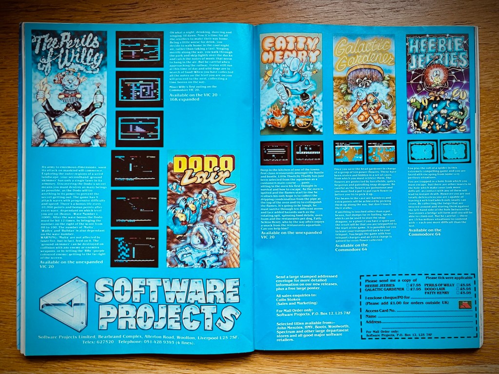 The September 1984 issue gave us our very first sight of The Perils of Willy, with it listed on another double-page, cinema frontage-styled ad, together with all the other Software Projects goodies you could now get your hands on. It was soon followed up by its own advert, heralding “Miner Willy’s first outing on the Commodore VIC-20!” A review also marked its release in the November issue… “Perils of Willy brings all the fun of Miner Willy to the Vic 20 for the first time… Willy is faithfully created in Vic graphics right down to his bowler hat… It’s a real Willy — not just a vague representation, as some Spectrum to Vic conversions tend to be… Comparisons with the original game are inevitable even if they are a little unfair… No, the game is not as good as the original Manic Miner or Jet Set Willy, but it is one of the best climbing games I have seen on the Vic 20.” Mmmm, not sure about that last bit but apart from that, I could probably rest my case here! We’ll finish off the story all the same though, with Jet Set Willy arriving on the C64 in December, where it’s not only deemed even better than its version of Manic Miner, but also one of the top five games ever on the platform! Obviously, that’s with the caveat they clearly never got to the end of it though, as initial copies shipped with a bug that meant you couldn’t! Didn’t stop it selling well though, even if not quite enough to top Decathlon and Elite in the Christmas charts that year. We can then conclude our tale with Jet Set Willy II, which arrived a few months later in 1985, and was confusingly a port of the expanded port of the original game for the Amstrad CPC, rather than a proper sequel, and while it still came from Software Projects, it was put together by Derrick Rowson and Steve Wetherill and not Matthew Smith. And whatever the reason for that was is probably the same reason behind why the final game in the originally planned trilogy, Miner Willy Meets The Taxman, never materialised.