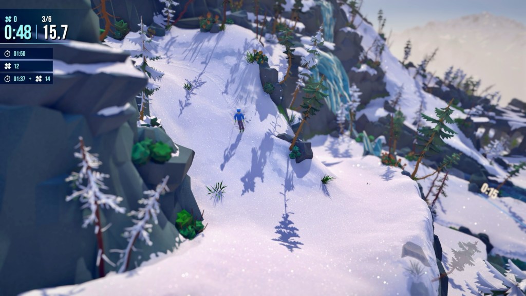 I’m a huge fan of Lonely Mountains: Downhill, and haven’t stopped dipping in and out since 2019, but with this sequel, it might finally have been superseded… The concept is the same, with you trying to find the ideal route down a sprawling mountain in the fastest possible time, and with the least possible crashes, but now you’re on skis rather than a mountain bike, and it’s not so lonely either because there’s both co-op and up to eight player versus modes too. Not really for me though, but with a no-pressure Zen Mode on top of a huge set of courses to get through, there’s more than enough solo stuff to keep you going for another six years, as you try to hit each one’s time and crash targets to unlock more (and be rewarded with all sorts of customisations), exploring each of the mountains in search of the perfect way down, then trying to perfect your own technique accordingly, over and over and over again! It’s so one-more-go, much like Trials was, and with similar challenge, as well as similar checkpointing, so you can instantly retry those bigger risks (and some wild drops!) for the reward of a few saved seconds, until you’re skilled enough that the next run might just be the one! So atmospheric too, mixing oversized pixels with these realistic but super-stylised and utterly gorgeous snowy dioramas, and the mountain sounds just right. The various types of snow feel just right too, with simple controls transmitting a real physicality. So addictive, so absorbing, so exhilarating, and a genuinely beautiful experience!