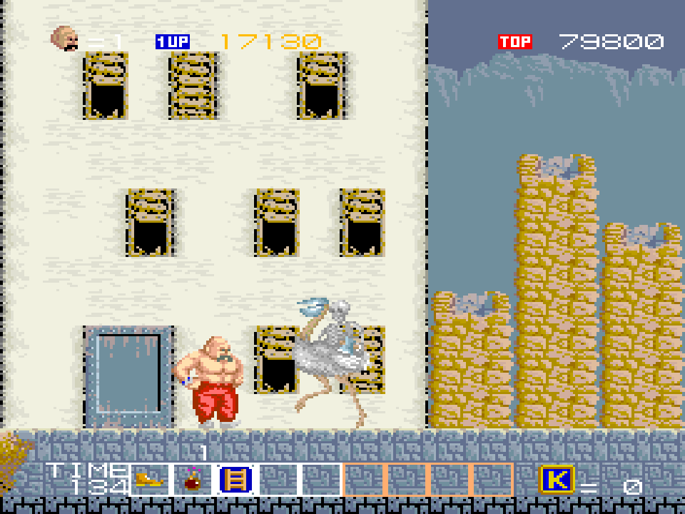 The brand new and strangely (but vaguely logically) titled Windjammers, Karnov & Friends collection for Evercade next, which came out a few days ago, and features five old Data East arcade games, obviously led by Windjammers, which at first glance might have been even more logical on one of the upcoming Neo Geo collections for the system, except SNK (who the Evercade folk, Blaze, have teamed up with for those) don’t own it, so it’s here instead. Anyway, I’ll come back to that and what else is part of an intriguing mix here shortly, but as usual with these, it’s all on a cartridge in a real box with an sizeable manual containing histories and trivia, as well as the all-important instructions, plus some lovely stickers. Once you fire it up, you’re also getting typically slick, sortable on-screen menus, game info screens, quick saves and loads, and various DIP-switch settings if it’s all a bit too hardcore for you! Let’s have a quick look at the five games included now, starting with the undisputed headline act, Windjammers, which is one of those games I might own all over the place already but you can never have too many ways to play! I’m a huge fan of this one from 1994, playing like tennis with a frisbee, or a souped-up, powered-up version of Pong. It plays best multiplayer too but solo is still full of variety, depth and strategy, and when you get properly in tune (and used to playing it on an Evercade d-pad), it’s an absolute joy and everything about it still oozes quality. Our co-headliner (but not really) is Karnov, an arcade-platformer from 1987 that I had a soft spot for on the ZX Spectrum but has always been old-school brutal wherever you play! Gets weird quick too, as your fire-breathing strongman delicately lumbers through nine levels of very nicely presented but not massively sophisticated treasure hunting, although its inventory system was pretty unusual for this kind of thing at the time. Definitely tough but it controls well and rewards perseverance.