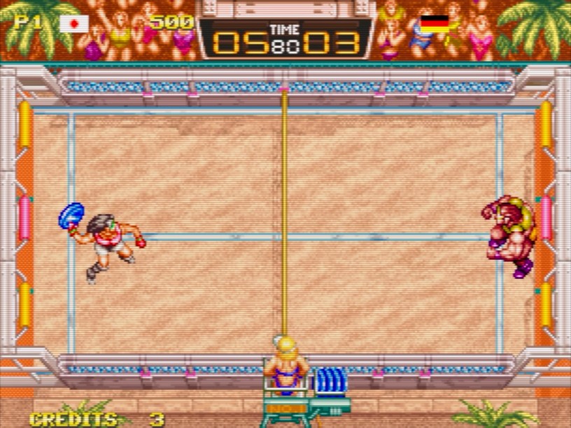 The brand new and strangely (but vaguely logically) titled Windjammers, Karnov & Friends collection for Evercade next, which came out a few days ago, and features five old Data East arcade games, obviously led by Windjammers, which at first glance might have been even more logical on one of the upcoming Neo Geo collections for the system, except SNK (who the Evercade folk, Blaze, have teamed up with for those) don’t own it, so it’s here instead. Anyway, I’ll come back to that and what else is part of an intriguing mix here shortly, but as usual with these, it’s all on a cartridge in a real box with an sizeable manual containing histories and trivia, as well as the all-important instructions, plus some lovely stickers. Once you fire it up, you’re also getting typically slick, sortable on-screen menus, game info screens, quick saves and loads, and various DIP-switch settings if it’s all a bit too hardcore for you! Let’s have a quick look at the five games included now, starting with the undisputed headline act, Windjammers, which is one of those games I might own all over the place already but you can never have too many ways to play! I’m a huge fan of this one from 1994, playing like tennis with a frisbee, or a souped-up, powered-up version of Pong. It plays best multiplayer too but solo is still full of variety, depth and strategy, and when you get properly in tune (and used to playing it on an Evercade d-pad), it’s an absolute joy and everything about it still oozes quality. Our co-headliner (but not really) is Karnov, an arcade-platformer from 1987 that I had a soft spot for on the ZX Spectrum but has always been old-school brutal wherever you play! Gets weird quick too, as your fire-breathing strongman delicately lumbers through nine levels of very nicely presented but not massively sophisticated treasure hunting, although its inventory system was pretty unusual for this kind of thing at the time. Definitely tough but it controls well and rewards perseverance.