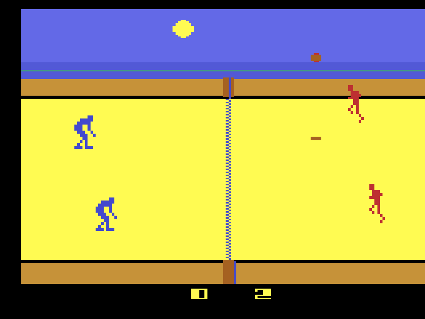 Back to 1982 for RealSports Football next, which might not have the looks of the latter-day last game but definitely has the moves! It’s a simplified take on American football but not so simple that you won’t need the instructions to hand for your first few goes, with both offensive and defensive play calls spread out across all the joystick directions, and that’s before you start trying to get the patterns and timings down! Like its subject matter, it’s not the most instantly accessible but might be the most rewarding… Unlike RealSports Soccer, which is a ridiculously dumbed-down and generally crap three-on-three take on the game from 1983, with possibly the laziest set of instructions ever, by someone whose knowledge of the game is about as deep as their spell-checker! That said, there’s still worse old footy games out there! Right, RealSports Tennis next, and it’s a very good game of tennis from 1983 that’s quite the pioneer too, with stuff like a 3D court (and a proper net), multicoloured sprites, decent ball physics, and you can even put your own initials on the scoreboard, which I think was a first for the system! Good flow to the game too, with proper scoring, three different shot types and decent AI if you’re playing solo, with more or less skilful difficulty levels too. But it’s still not the best thing on here! That would be 1982’s RealSports Volleyball, which is also one of my top-ten favourite games on the Atari 2600, offering an effortlessly playable and very atmospheric two-on-two game of beach volleyball. The beach is the star too, with rolling waves and a day-night cycle that eventually takes away the crutch of being able to see the ball’s shadow, while the players’ animations more than make up for their relative simplicity, and the sound is all you could hope for. Serving, setting, hitting and spiking the ball is so easy, as is controlling your side of the net, and it’s such a good time, and the perfect way to end our look at what’s on here. Which might include a couple of duds but there’s more than enough to keep you busy and very happy for a very long time regardless!