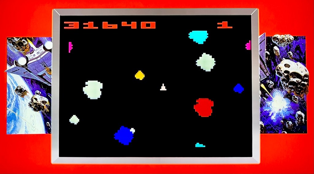 I promise we’ll get onto some other systems after this one but at least my paranoia about that tells you this top ten is from the heart! Right, Asteroids, and what am I playing at not going with the legendary 1979 original?!?! Well, it’s been a while since I’ve been able to get my hands on that, and ever since we’ve had home versions of it – even ones on consoles with more buttons than the cabinet had – it just hasn’t felt right, while home ports have always been built for purpose, and this one from 1981 is the one that always stuck! By the way, sorry for the crappy phone pic of my TV screen here – the genius faster than the eye can see flicker technique used here to give the impression of way more going on at once than the machine was technically capable of means a regular screenshot (of Atari 50 on Nintendo Switch in this case) only shows half the action! Anyway, this port went for full-colour, solid asteroids to shoot and break apart then shoot again, alongside the occasional UFO, rather than the arcade game’s iconic vector graphics, but otherwise your ship’s trademark inertia is all present and correct as you rotate and thrust your way around the screen, which also overlaps on each side. Fantastic sounds too, with authentic fire, thrust and explosion, and such an ominious, Jaws-like pulse in the background. The box art boasts “66 video games” which means a ton of different game modes and variations too, as was often the case on the 2600, and you do need to play with them a bit to find the original’s frantic gameplay because if you just fire it up and press start, it’s going to take a while to get there! I like mode 8 with UFOs on, which are also missing as standard, but your risky emergency hyperspace jump, which can easily dump you in front of a lump of space rock, is on by default here, and altogether it just feels like I remember Asteroids feeling, which is all you can ever ask of a home port, even if not a home version!