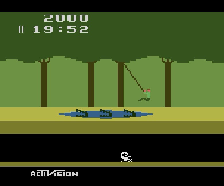 Which also goes for Enduro, the pioneering chase-view 3D racer with days, nights and all sorts of weather in-between, and is probably my overall highlight in this collection, and I could literally keep playing forever once I get going! I’m also very fond of our next two games but they really need to be played two-player to get the most out of them, with Fishing Derby a simple competition to get the biggest fish against the clock (and a giant shark!), while Freeway is like a simplified Frogger where you want to get your chicken across the road as many times as possible before time runs out; loads of game modes on this one too. Grand Prix is a simple but fun side-on racer where you’re avoiding other racers and various hazards to get the best times over four courses, but as primitive as it might seem now, those big cars were something else at the time! Megamania is another excellent single-screen shoot ‘em up that’s a bit Arcadia meets Galaxian, with loads of variety of enemies and it’s just so well executed, and once again, really hard to put down. Pitfall is another of the collection’s big-hitters, and another real pioneer, not to mention a near-miracle on the system, as you take the legendary Pitfall Harry treasure hunting across 255 deadly jungle-based platforming screens. Private Eye reminds me a lot of the much-maligned ET, where you’re driving your detective around a similarly constructed town, looking for clues, evidence and stolen items to return while avoiding Henri Le Fiend’s dastardly henchmen. More depth than most here, full of character and definitely worth getting to grips with!