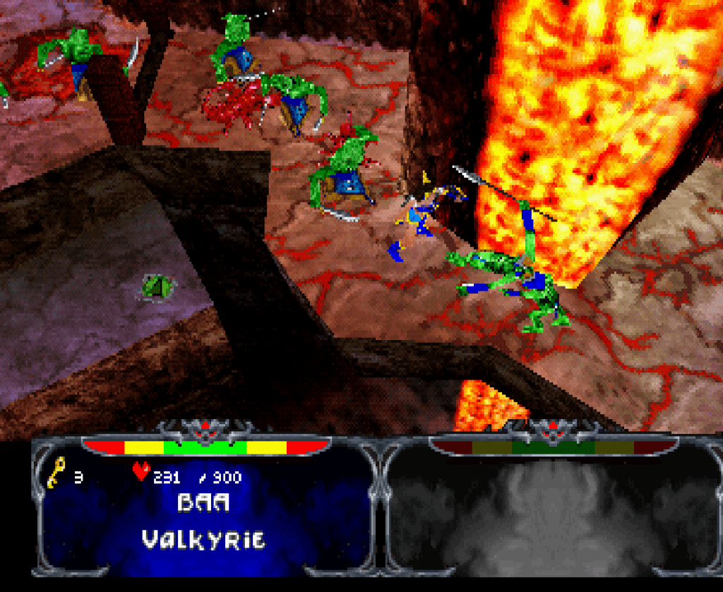 Although I count the original Gauntlet as one of my top ten favourite games of all time, I’d never played any version of Atari’s 1998 arcade follow-up, Gauntlet Legends, until I came upon a copy of the PS1 port from a couple of years later just a short while ago. In fact, apart from knowing it existed, I was pretty much oblivious to it, including how this is apparently by far the least of the conversions when compared to its Nintendo 64 and Sega Dreamcast counterparts. Ignorance is bliss though, and I’ve found it to be a perfectly fun, more or less mindless, more or less top-down (in an inevitably 3D way), fantasy hack and slasher with just enough depth to keep it surprisingly hard to put down! I think the main concession here was the reduction from simultaneous four-player to two-player, but even that’s still twice the number I’ve had to worry about for a very long time, and just like the first Gauntlet, it quickly finds its own rhythm playing solo, as you choose from the classic lineup of Warrior, Valkyrie, Wizard or Archer (plus four more to find along the way), then set off across four kingdoms, looking for various magical bits and pieces that will get you into the Underworld to see off an evil wizard and his demonic horde. And it really is quite the horde, soon ganging-up on you in traditional fashion and giving the PlayStation a proper workout, which also goes for some impressively large dragons and other boss monsters you’ll come up against. Okay, it is all a bit jagged to look at nowadays, but they’ve nailed that Dungeons & Dragons atmosphere while keeping things colourful and varied, and it’s all helped along by a proper epic orchestral soundtrack and some really polished “fantasy” sound effects. All the intensity you want from a Gauntlet game too, but as alluded to earlier, there’s more to it than just masses of nasties to take down, with different facets to level completion, tons to find, shops, power-ups, character-levelling, persistent upgrades, secret levels, those secret characters… It’s almost as much RPG as it is arcade game, in a very immediate way, and, apart from lack of time spent around arcades in the late-nineties, I think that’s probably why I never paid it any attention first time around but have now found it so well-suited here, and best conversion or not, it seems to be just right for me!