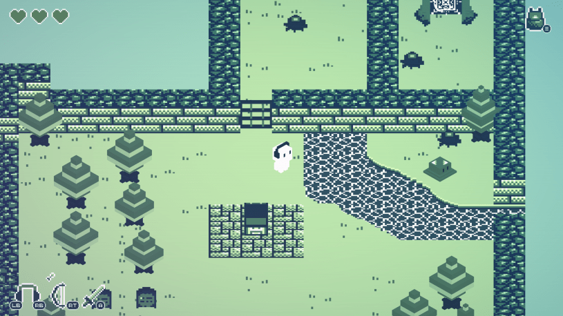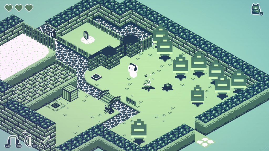 I must admit, it was the Game Boy Zelda vibe that first got me to download the demo of Cassette Boy on Xbox when it appeared on there (and elsewhere) the other week, but it was the “does something exist if you’re not looking at it?” mechanic that then didn’t take very long at all to convince me to buy the full game! It’s a kind of perspective-puzzle, action-RPG-lite that might lack the sophistication of the aforementioned Zelda, or, indeed, that of another obvious inspiration, Fez, but it more than makes up for it in accessibility and simply giving you a fun time, as you rotate a 2D pixel-styled 3D world to make obstacles disappear and new paths to emerge as you try to uncover the mystery of the vanished moon… Awkward switch you need to keep pressed down to get through a gate across the screen? Spin the screen around so it’s hidden behind a tree and therefore doesn’t exist anymore, meaning you can let go and problem solved! Or maybe there’s a big monster you couldn’t hope to beat with your puny sword blocking a passageway. Make it side-on so the monster’s behind the passage wall, and that’s not there anymore either. You can use this left and right rotation – effortlessly located on two shoulder buttons – to power things up as well, by holding them down for an extended rotation, like for raising a platform or firing a cannon at a boss. These are nicely done when you come across them too, mixing straightforward puzzling with some running around and a bit of brute force, and altogether it’s just a great looking, beautiful sounding and generally relaxed and enjoyable modern-retro time!